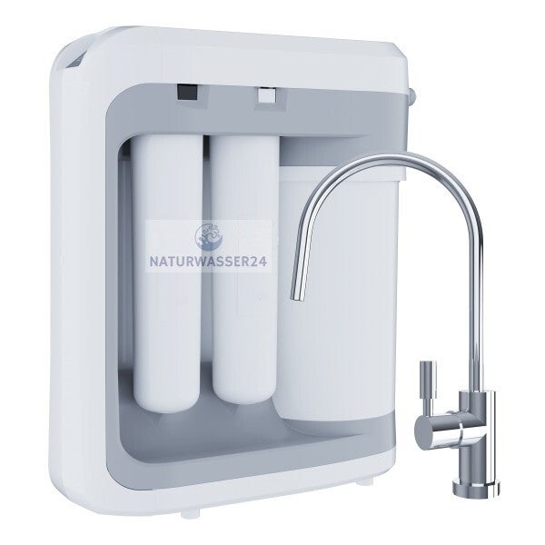 Dank des Wasserfilters OSTMOTC reichert die Umkehrosmose-Anlage Ihr Wasser mit Mineralien an und entfernt Bakterien, Keime und andere Verunreinigungen bis zum 0,1µ.