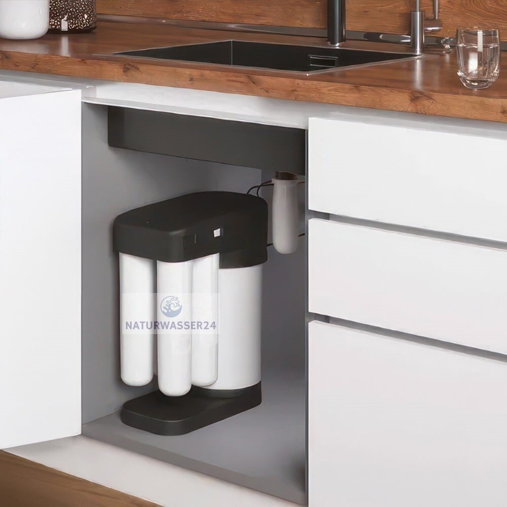 Mit der NW24-STEELBOX PRO RO-102S können Sie sicher sein, dass das Wasser, das Sie zum Trinken, Kochen, für Babynahrung und für Haushaltsgeräte verwenden, vollkommen sauber ist. Er entfernt Härtesalze vollständig aus dem Wasser und sorgt so für eine lange Lebensdauer von Kaffeemaschine, Wasserkocher, Slow Cooker, Bügeleisen und Dampfgarer.