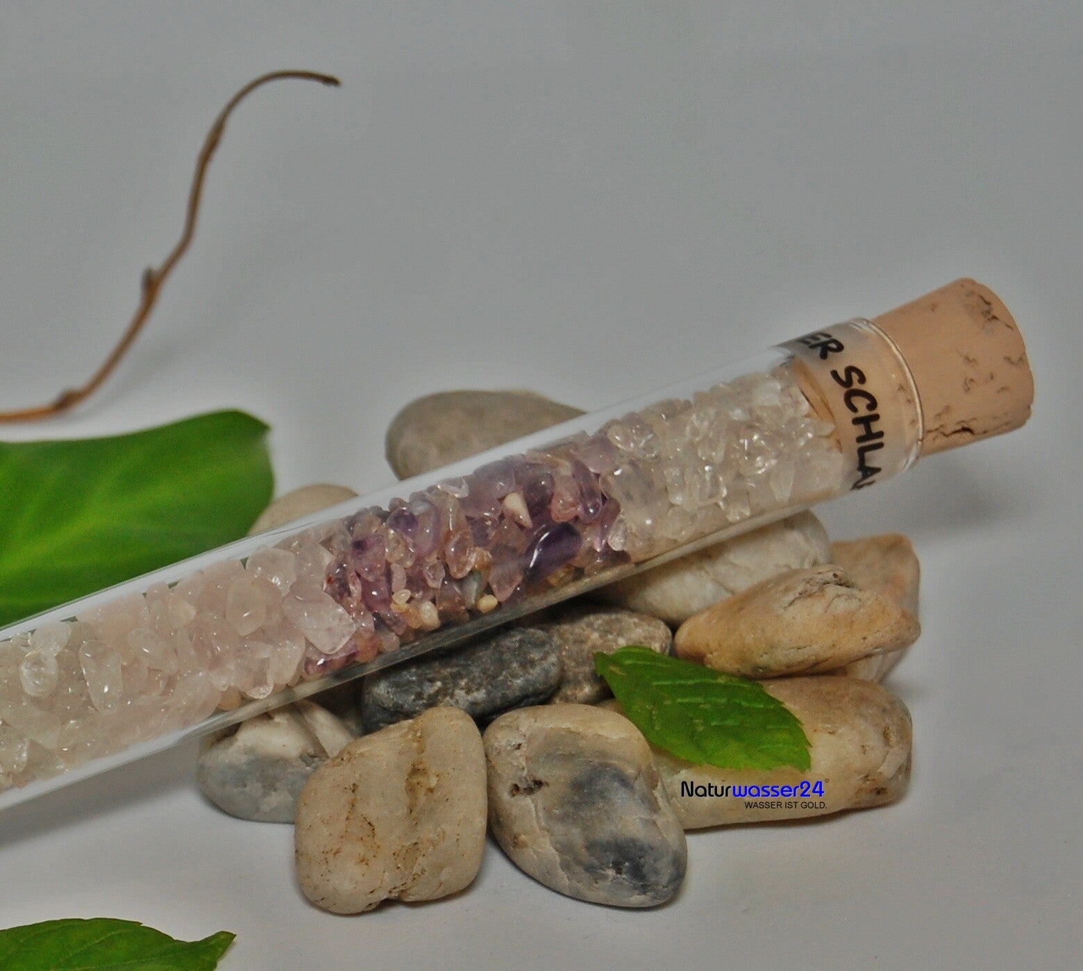 Rosenquarz, Bergkristall und Amethyst kann positiv, belastbar und gelassen machen und fördert einen erholsamen Schlaf. **