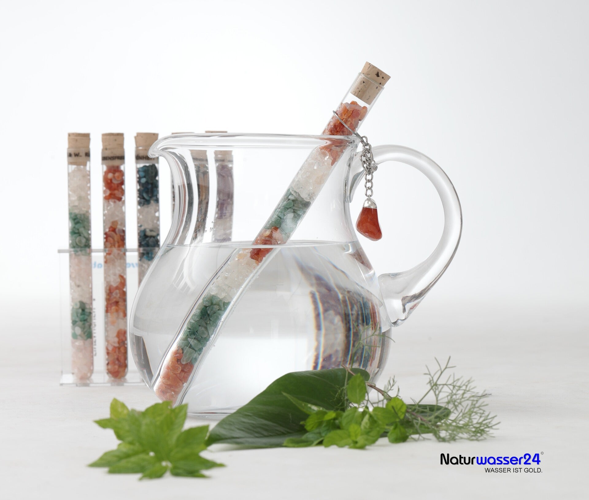 Der Glasstab ist gefüllt mit feinen Edelsteinen, bevorzugt aus fairem Handel und gemmologisch kontrolliert (GKS-Siegel). Ein Reinigen der Steine ist nicht notwendig. Spüle den Stab vor dem ersten Gebrauch gut ab und wiederhole dies von Zeit zu Zeit.