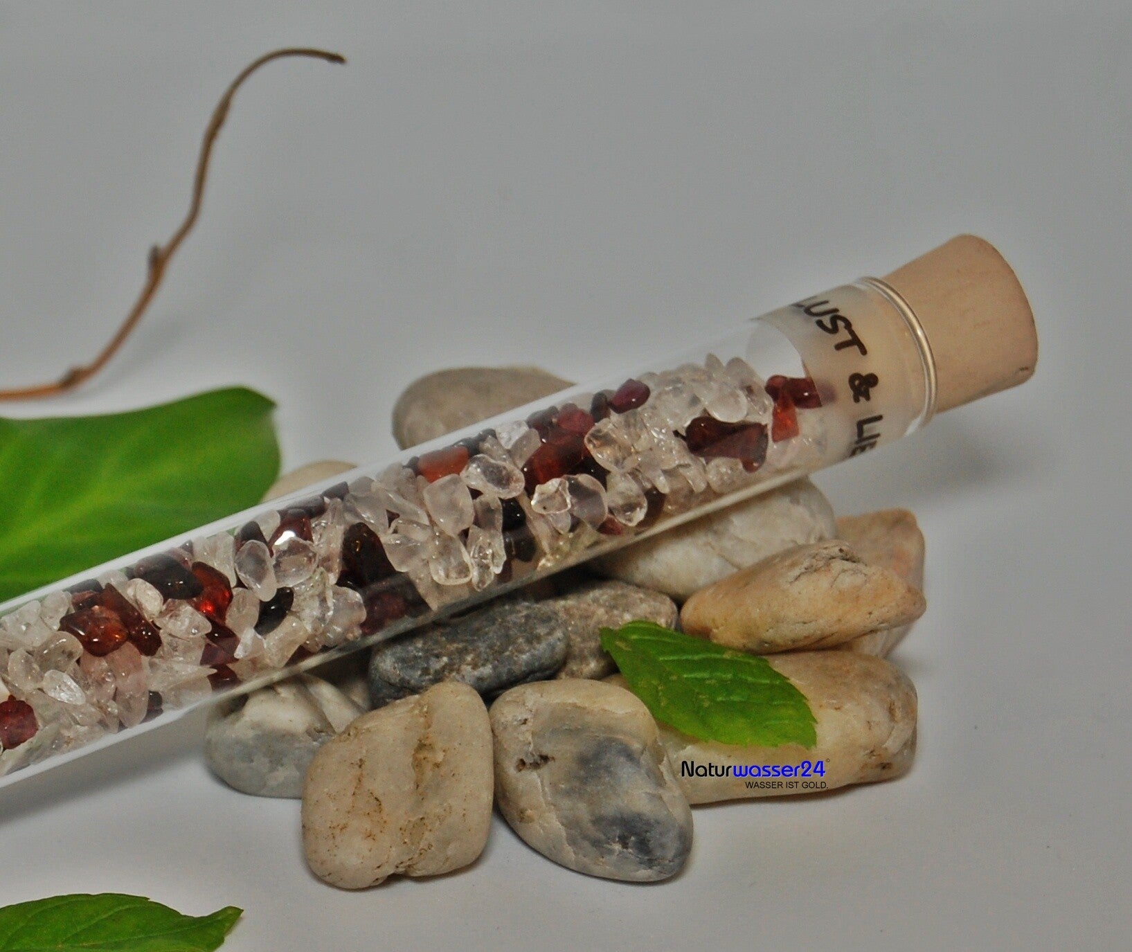 Roter-Granat und Bergkristall, die Essenz in diesem Wasserstab enthält hundertfach das Undenkbare, fokussiert durch glutrote Granat-Kristalle, die Edelsteine der lodernden Liebe. Entdecken Sie die Lust als Motor des Lebens! **