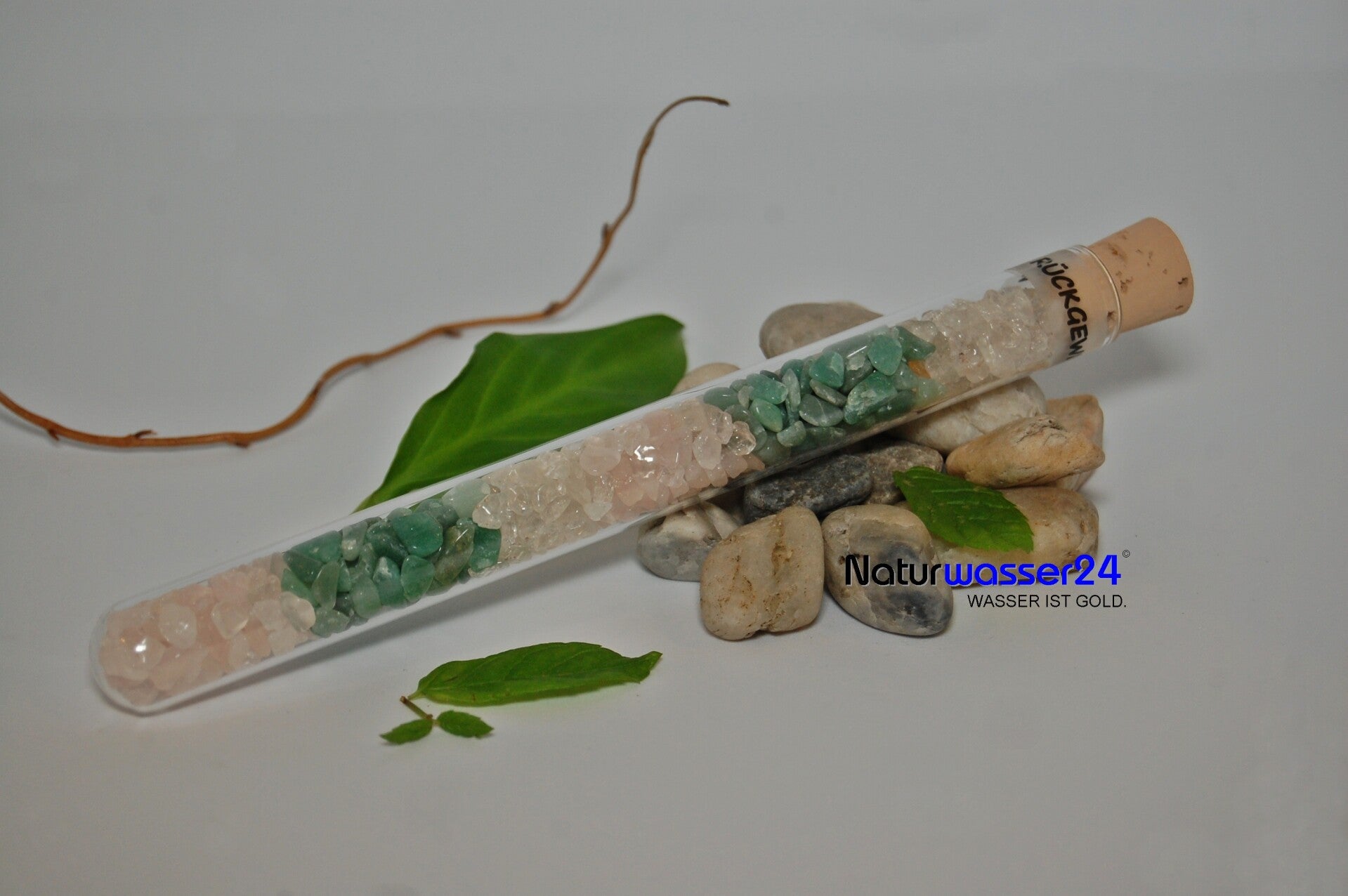 Der Glasstab ist gefüllt mit feinen Edelsteinen, bevorzugt aus fairem Handel und gemmologisch kontrolliert (GKS-Siegel). Ein Reinigen der Steine ist nicht notwendig. Spüle den Stab vor dem ersten Gebrauch gut ab und wiederhole dies von Zeit zu Zeit.