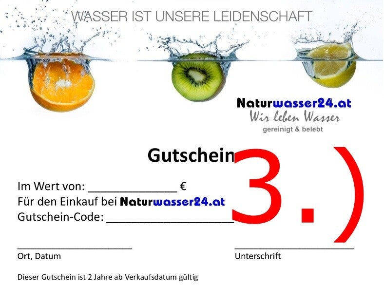 Und so geht's: Suchen Sie sich einen Wertgutschein in der Höhe des gewünschten Verschenkbetrages aus. Der Beschenkte wählt ein Produkt aus unserem Angebot und bezahlt im Warenkorb ganz einfach mit seinem persönlichen Gutschein-Code. Sollte der Produktwert vom Gutschein abweichen, kann der Beschenkte den Differenzbetrag problemlos zuzahlen bzw. den Restwert für weitere Einkäufe nutzen. Der Käufer erhält den Gutschein im Wert unverzüglich nach Eingang des Betrages auf unserem Konto per E-Mail bzw. zum sofortigen Download als PDF. Oder mit der Post als Gutschein. (Anfrage)