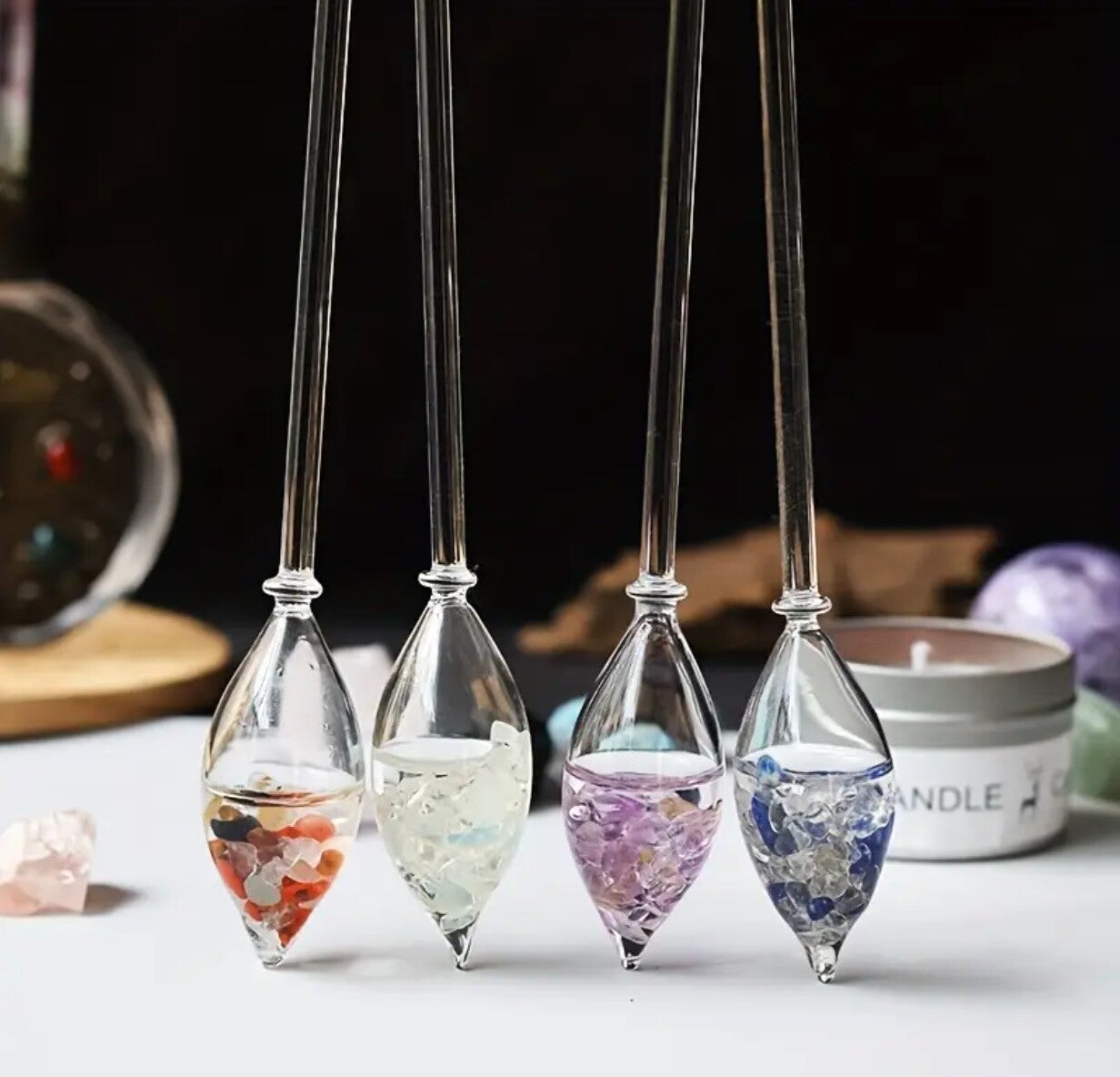 Edelstein-Glasphiolen sind kleine, meist aus hochwertigem Glas gefertigte Röhrchen oder Stäbe, die mit Edelsteinen wie Amethyst, Rosenquarz oder Bergkristall gefüllt sind. Sie werden häufig in Wasser- oder Getränkekaraffen eingesetzt, um das Wasser energetisch zu „beleben“ oder mit den symbolischen Eigenschaften der Steine zu verbinden. Die Phiole selbst sorgt dafür, dass die Edelsteine nicht direkt mit dem Wasser in Kontakt kommen.
