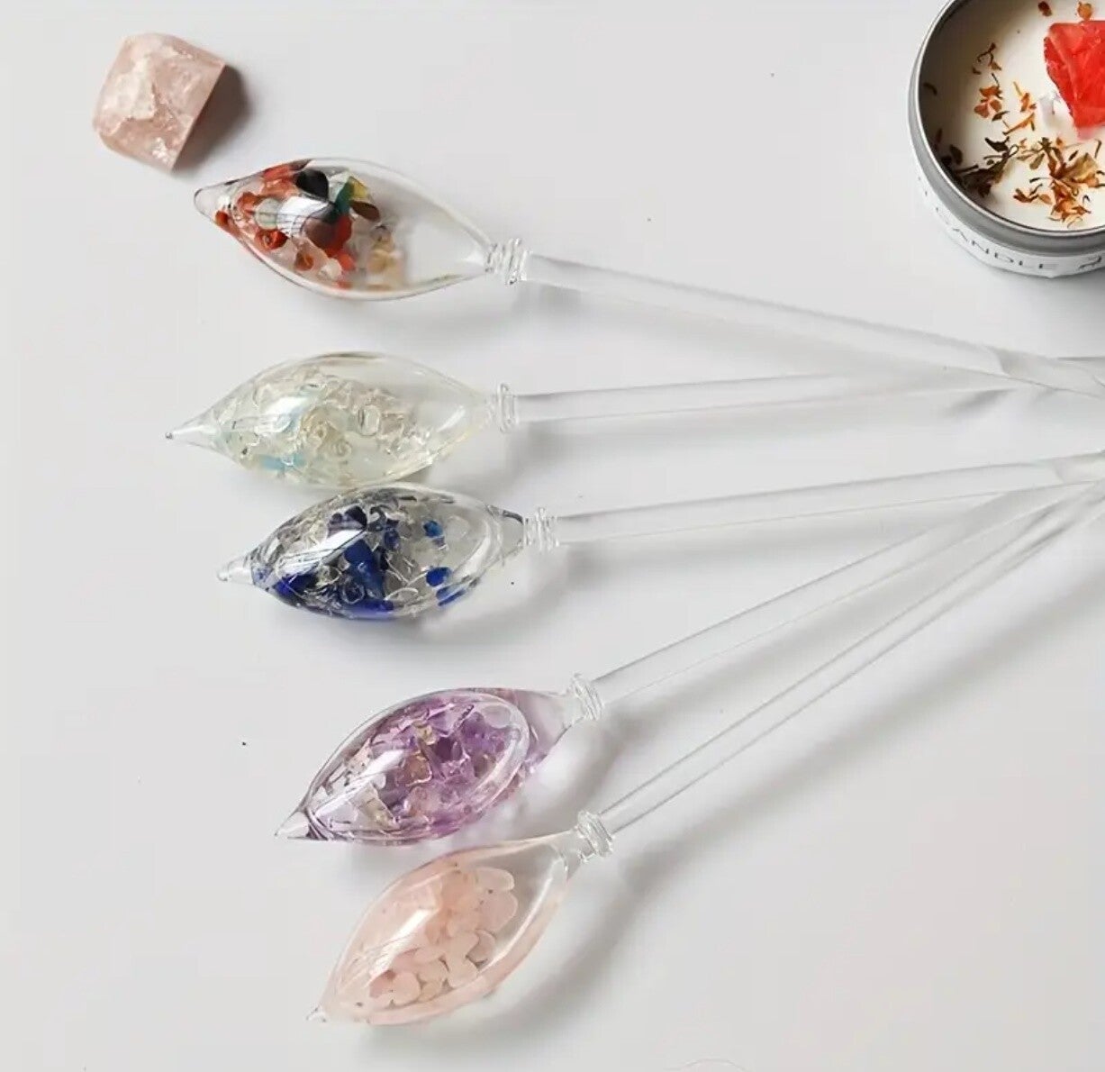 Edelstein-Glasphiolen sind kleine, meist aus hochwertigem Glas gefertigte Röhrchen oder Stäbe, die mit Edelsteinen wie Amethyst, Rosenquarz oder Bergkristall gefüllt sind. Sie werden häufig in Wasser- oder Getränkekaraffen eingesetzt, um das Wasser energetisch zu „beleben“ oder mit den symbolischen Eigenschaften der Steine zu verbinden. Die Phiole selbst sorgt dafür, dass die Edelsteine nicht direkt mit dem Wasser in Kontakt kommen.
